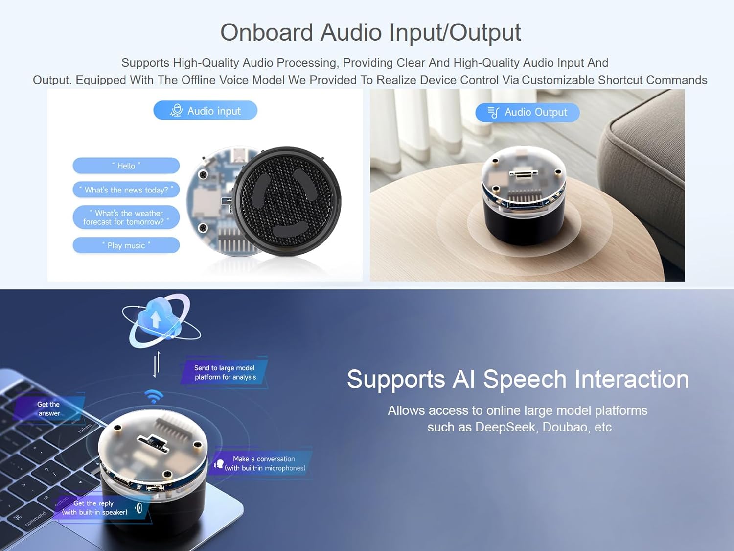 Introducing the ESP32-S3 AI Smart Speaker Development Board, the ultimate solution for your next innovative project! This powerful development board is designed to support dual-MIC audio capture, enabling crystal-clear voice recognition and AI speech interaction. With its advanced capabilities, you can create smart speakers that respond to your commands with precision.
