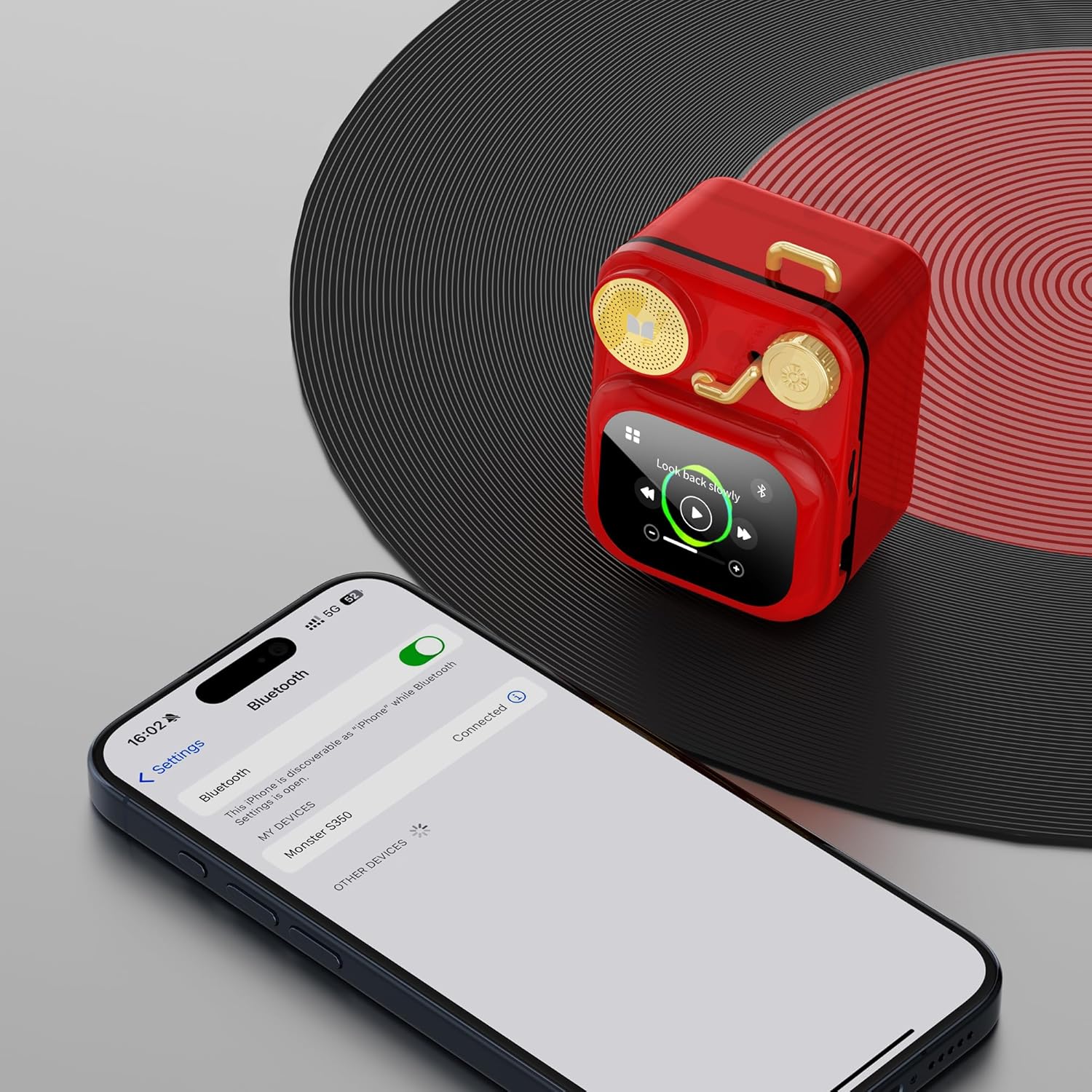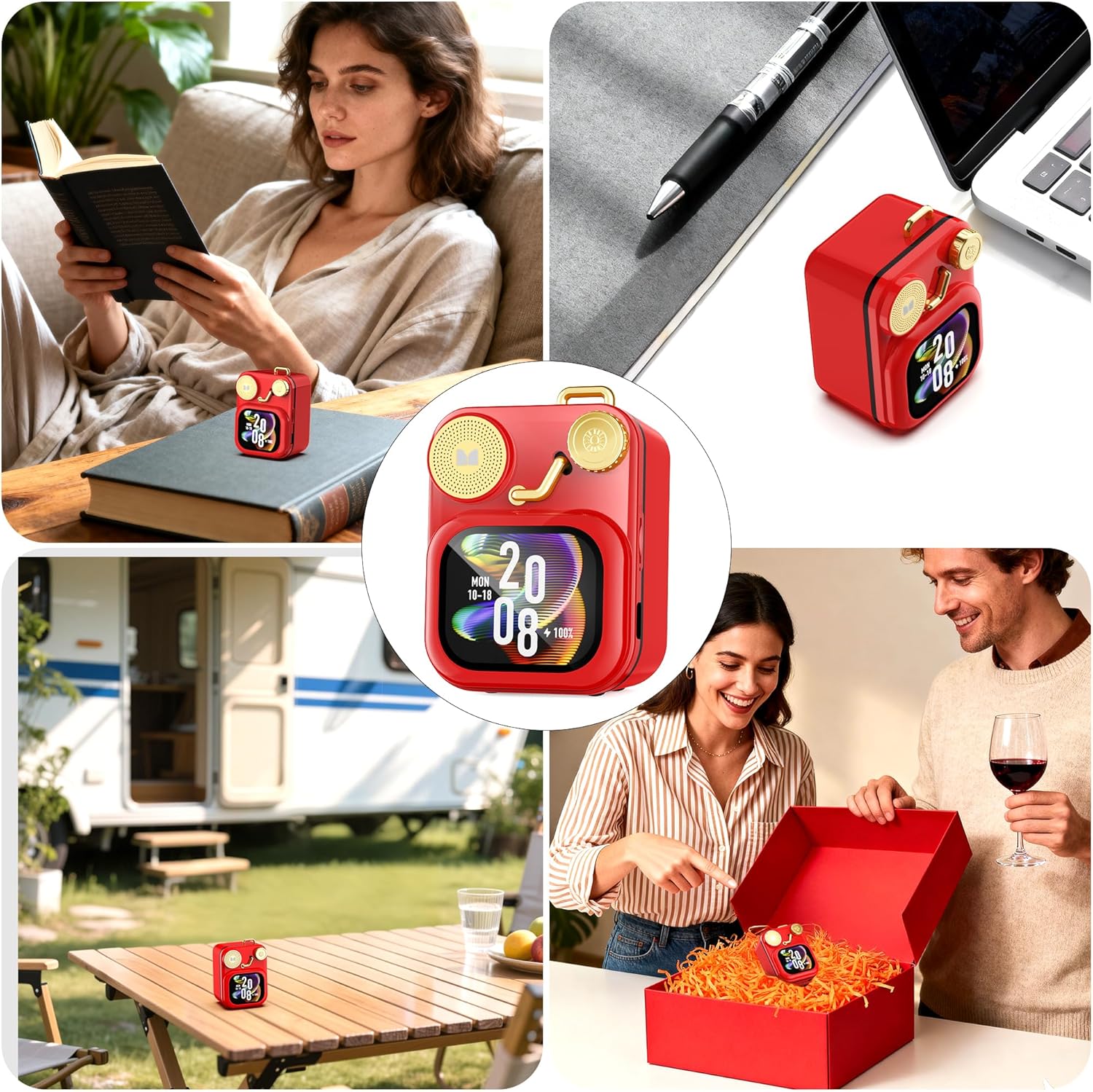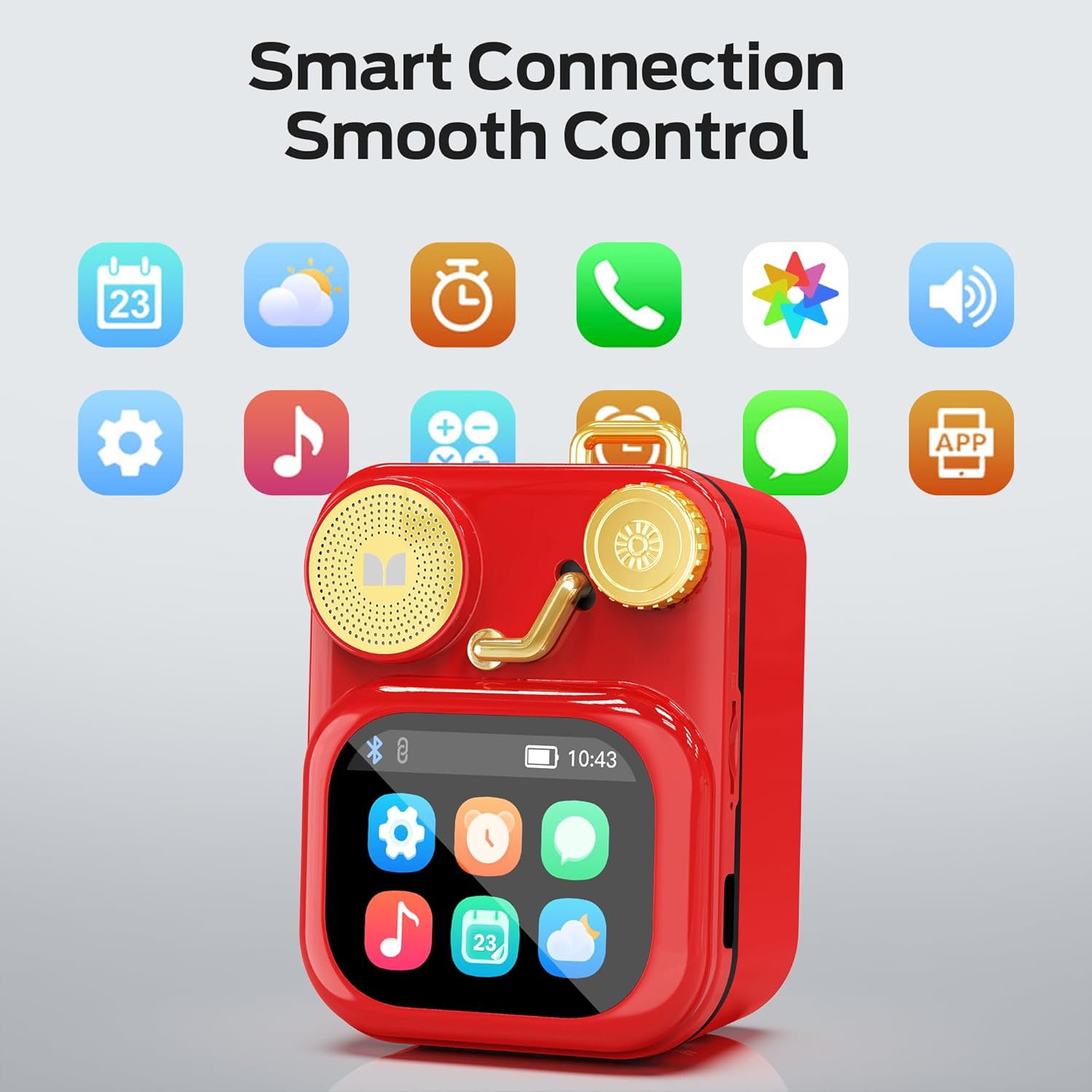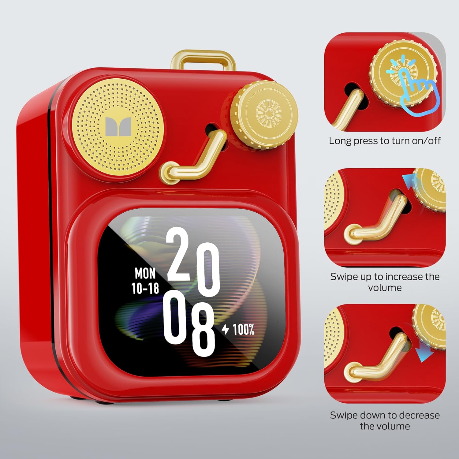 Monster S350 Bluetooth Speakers, Portable Wireless Speaker with Touch Screen, Bluetooth 6.0, Retro Speaker with Message and Alarm Push, Support TF Card, for Friends, Red